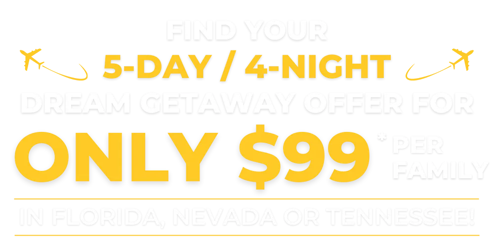 ACCOMMODATIONS: 5-Days / 4-Nights at a resort in the location of your choice for only $99*!